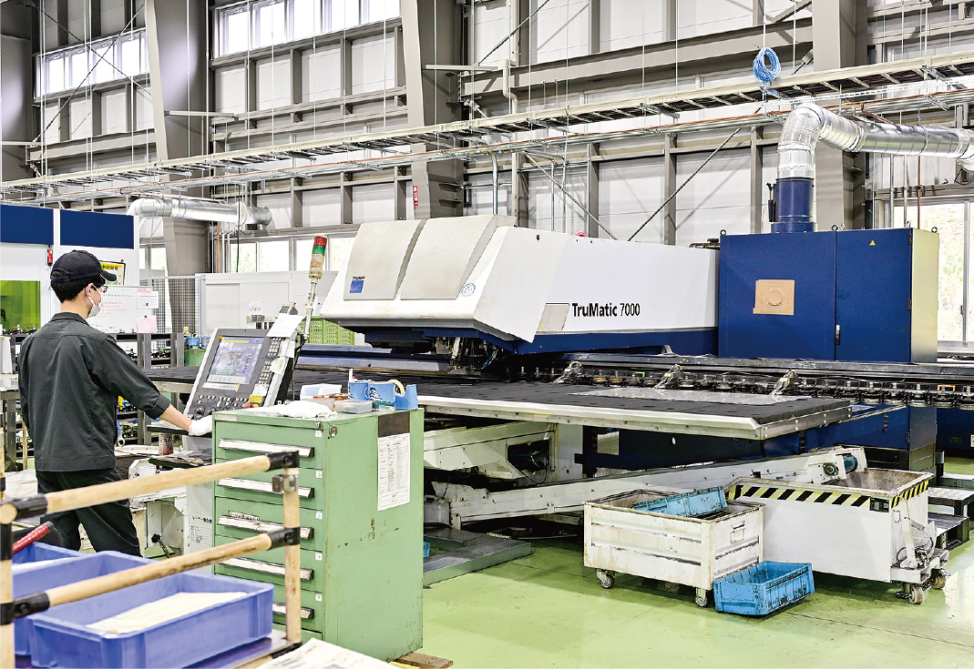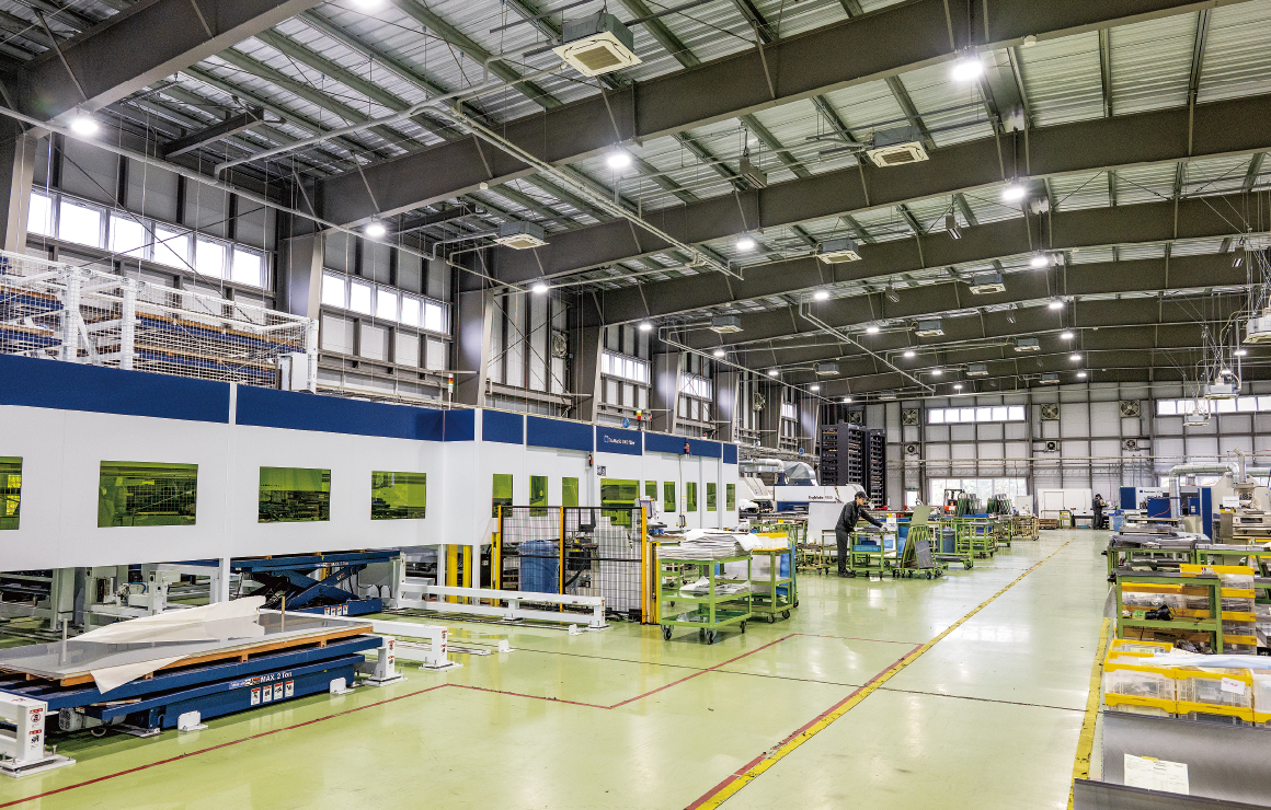 「新しい工場は600坪ほどあります。新工場の稼働で私が感じる一番の変化は社員の雰囲気です。当工場の従業員は年齢層が若いこともあり、新しい設備が整えられた明るく綺麗な新工場の環境に、モチベーションが上がっているようです。もちろん新工場は最新鋭の機械を導入していますので、作業効率のアップや省人化、自動化の推進にも繋がっています。例えば工場における最初の工程となる材料を切り出す作業は、機械と人の手による作業のトータルで以前は最大24時間のシフト体制が必要でしたが、現在は18時間まで短縮できています。また、これまで男性社員が担ってきた力仕事を機械がやってくれるようになり、男女問わず働きやすい作業環境の整備が進みました。これは女性従業員が約50%を占める当工場にとって、とても有意義なことです」。最新鋭機械の導入やロボット化で自動化、省人化ができる部署がある一方で、溶接のように人の手が不可欠な部署もあることについては、「省人化できた部署の人員は省人化できない部署にまわってもらい、層を厚くしています。当工場の作業環境の向上が実現しているのは、先進的な機械の力だけではありません。従業員の創意工夫や努力があればこそです」と笑顔をみせる長関工場長。